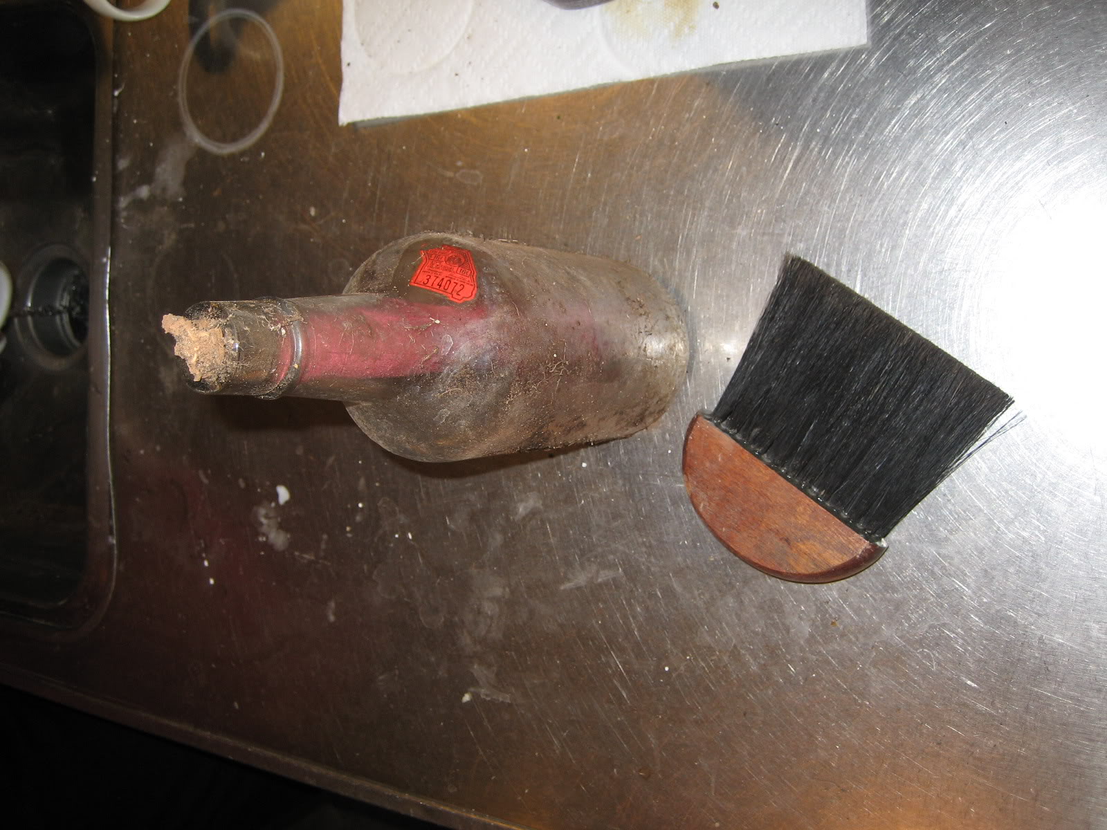 During that time it seems that the small amount of condensation that had snuck through the cork and had frozen to the side of the bottle had now thawed and was seeping into the paper! With no other course of action available, we covered the bottle in a towel and smashed it with a ball peen hammer.