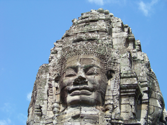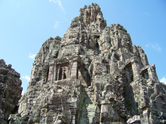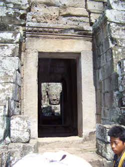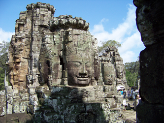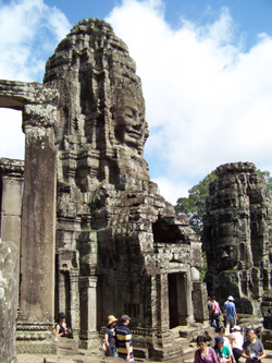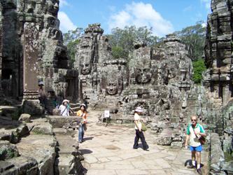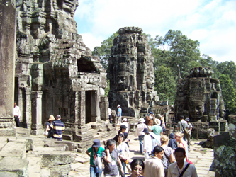 After entering the city walls we drove to the temple of Bayon. Approaching the temple was an experience in itself. The craftsmanship that had gone into carving the numerous faces of the Buddha was breathtaking: