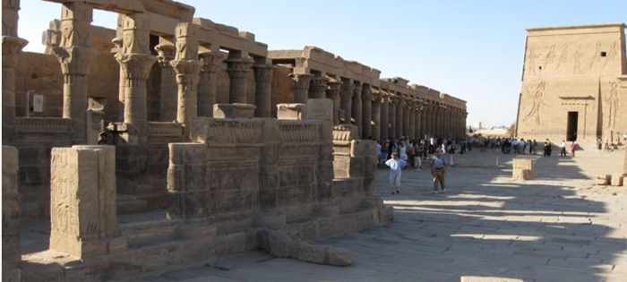The temple complex of Philae was dedicated to the goddess Isis. Philae was so important that pilgrims came from all over Egypt to worship her there. This complex was unique in that it sat on an island in the middle of the Nile River. Early writers such as Strabo, Pliny the Elder and Seneca mentioned it in their writings.