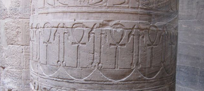 Just for the record I did take a picture of one of the columns in the temple, to document the classic Egyptian art. Here you can see ankhs carved into the column: