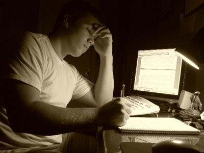 evenly between school work and writing; with some martial arts on the side. He
