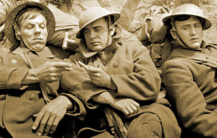 buddies join the army in the Great War. Two are killed, the third loses