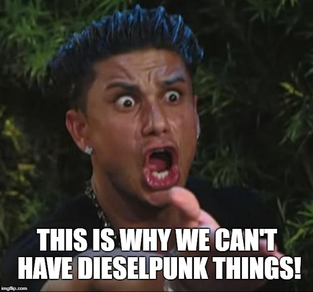 If there’s only two things I need you to understand after reading this rant, it’s that every time a group has a leader with a messiah complex it always ends badly for the group in general, and there’s a reason why I keep asking others such as yourselves to help define and redefine our principals and definitions repeatedly. I don’t want you to mistake me as being one of those members with a messiah complex in any of the aforementioned groups who is "The Gatekeeper" of what is and what isn't "Dieselpunk" or "Steampunk."