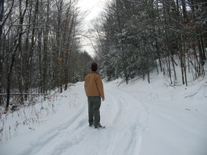 One of my favorite trails to hike during Spring, Summer and Autumn. But, have I hiked this trail much during the winter? Not really. I've always wanted to, but it's hard having two kids. But, my youngest is getting used to the cold so, who knows... maybe sometime soon I'll pull them down this trail on a sled. Severe weather is nothing to worry about, with some very rare exceptions. My commentary about this is pretty obvious, the media likes to hype every large storm as if it's the up-coming natural disaster, something they should never do for ratings. It makes people soft and diminishes the need for attention really bad storms need. Here in the North East, the source of that hysteria goes back to the Blizzard of '78 when it snowed for days and the snow piled up in feet, not just inches. I remember school being closed for those days, and I remember one of our neighbors took a half an hour to walk from her house to ours to tell us she heard that they already canceled school for the next day. The Blizzard of '78 was the first taste of what a real storm can do and how it can bring people together and force you to recheck your priorities. But it's hard to take Storm Warnings seriously when the local news outlets hype it with dramatic music and dramatic graphics to go with the local school and business closings. It's almost like that old bit: "Asteroid To Strike the Earth at Any Minute and destroy all life on the planet for centuries to come. Full Story at 11, Stay Tuned!" This would also be a great time though to say a few words about the other side of these situations. Be prepared, have plenty of food and water on hand. Don't stop living your life just because some over-dramatization about a coming storm, but take the threat seriously enough to stay safe and alive while you enjoy the weather. In the meantime, I'm putting on my snow-shoes and pulling my youngest around the yard while Coppertop follows me around with my camera... have fun! |