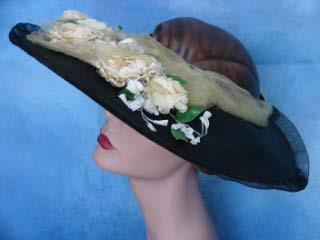 Women sick of mourning after the “war between the states” donned sprigs of flowers and encircled their heads in bright colors on the “Sunday of Joy”. In Edwardian days, the use of real stuffed birds caused the death of so many birds in the name of hat decoration that some species came near to extinction. To hold these giant monstrosities on I must mention the hatpin. Hatpins were often works of art and came in all the available materials of the day. Plain or bejeweled hatpins came in many sizes and lengths. Not only were they used to keep a hat on, but to be at the ready to remind a young man of his manners. In the name of propriety, hatpins were apparently used too often as they are now considered a lethal weapon in New York and illegal to wear.