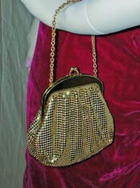 Violet compliments her ensemble with a petite Whiting and Davis mesh purse