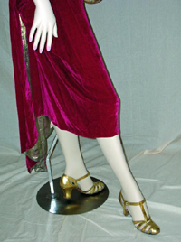 garters also referred to as “jazz garters”. Gold lame T-strap shoes complete