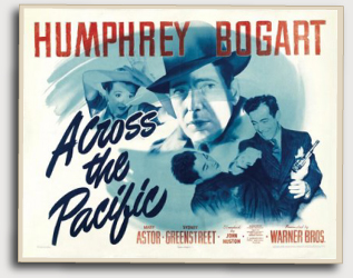 At least two of Bogart's movie fit in this Category of an American man fighting against a clandestine organization. "All through the Night" and the subject of this review: "Across the Pacific" is both two excellent movies he made under his contract with Warner Brothers during that era. Across The Pacific 1"Across the Pacific" isn't as tongue and cheek as "All Through The Night", but reflects much of the adventure that may have inspired another franchise many of us are interested in. Much as it is true today, the themes of these movies were relevant during the world war two era, American’s living back then were just as concerned about Fifth Columnists and outright spies taking advantage of America's open society to wreck havoc.