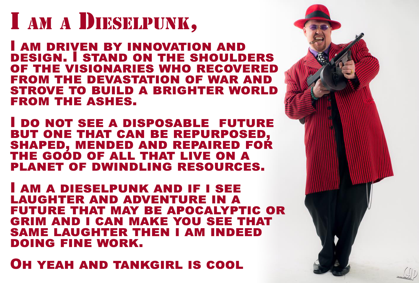 Dieselpunk is a celebration of the retro futurism of the 1920s – 1950s. The genre asks “what if” and presents the future of tomorrow through yesterday’s eyes. The visual aesthetics incorporate elements of art deco, noir, prohibition, flappers, gangsters, and the World Wars combined with sci-fi, fantasy, magic, alt history, and future technology to create a unique and distinct genre. -